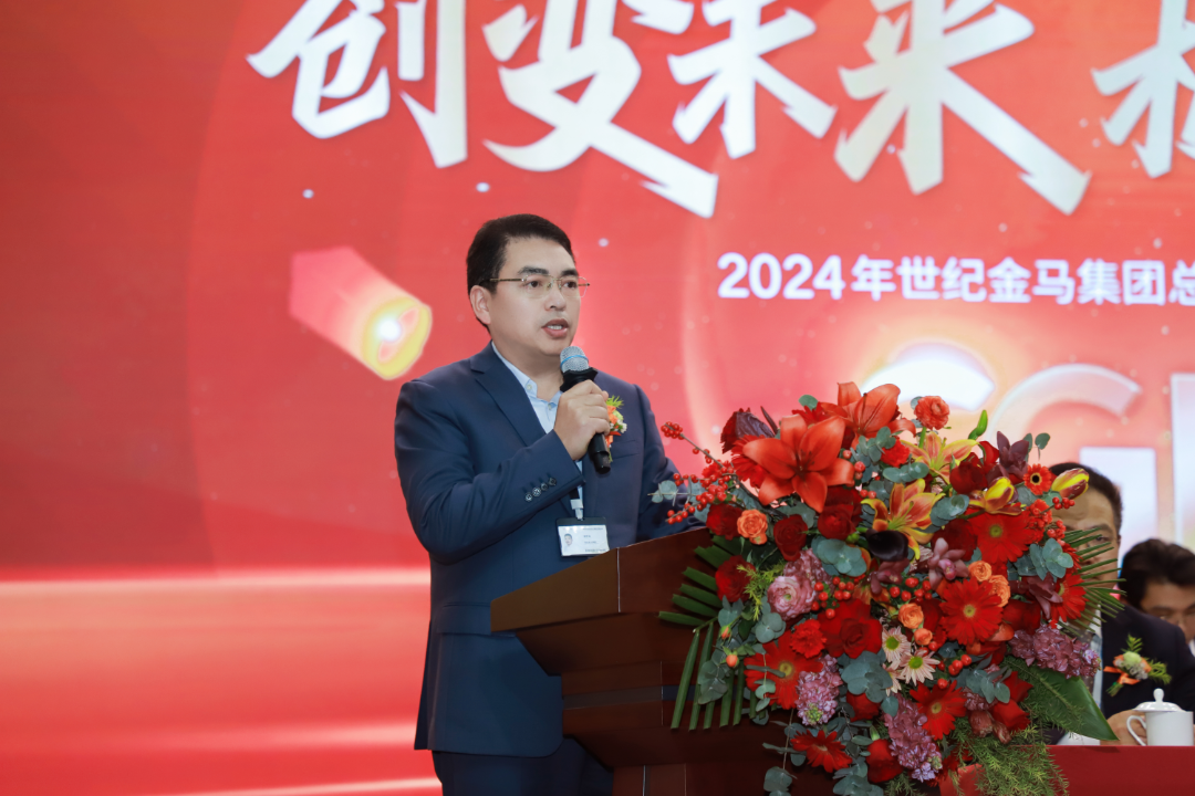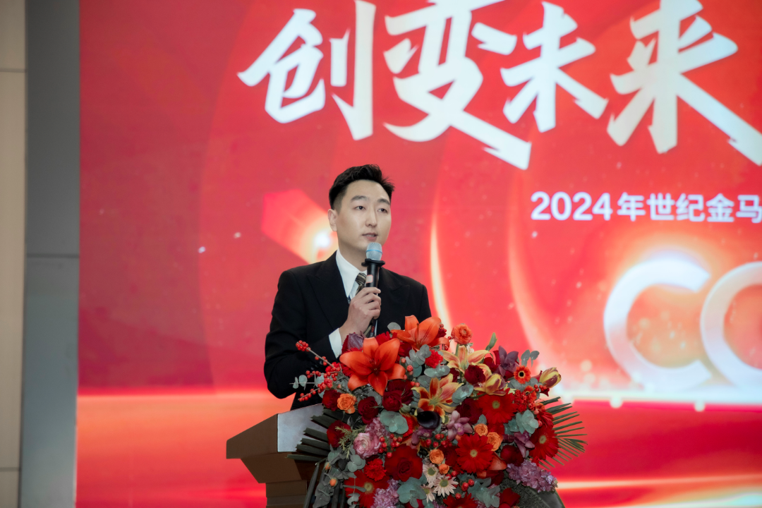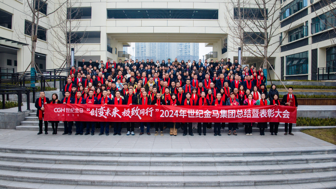 创变未来·极致同行——2024年世纪金马集团总结暨表彰大会圆满举行!![]() ![]() ![]() 世纪金马集团 ![]() 创变未来 极致同行 ![]() ![]() ![]() 1月21日下午,创变未来·极致同行——2024年世纪金马集团总结暨表彰大会隆重召开!大会全面回顾2024年的工作历程,表彰优秀团队与个人,共同展望未来发展蓝图。 世纪金马集团总裁谢梦龙出席会议。特邀嘉宾谢纯明、集团全体人员、地产事业部全体人员、智慧服务事业部经理级及以上人员、花滩医院科室主任及以上人员、其他分(子)公司全体在编人员、退休老员工、振华学校全体人员、公司合作顾问、优秀合作单位代表等参加了此次大会。 在大会正式开始前,一个温馨而感人的场景吸引了所有人的目光:全体高管整齐划一地站立,满怀敬意地等待谢纯明老先生步入主席台,深刻体现了集团内部尊老爱幼、孝敬长辈的优良企业文化传统,让人倍感温暖与鼓舞。