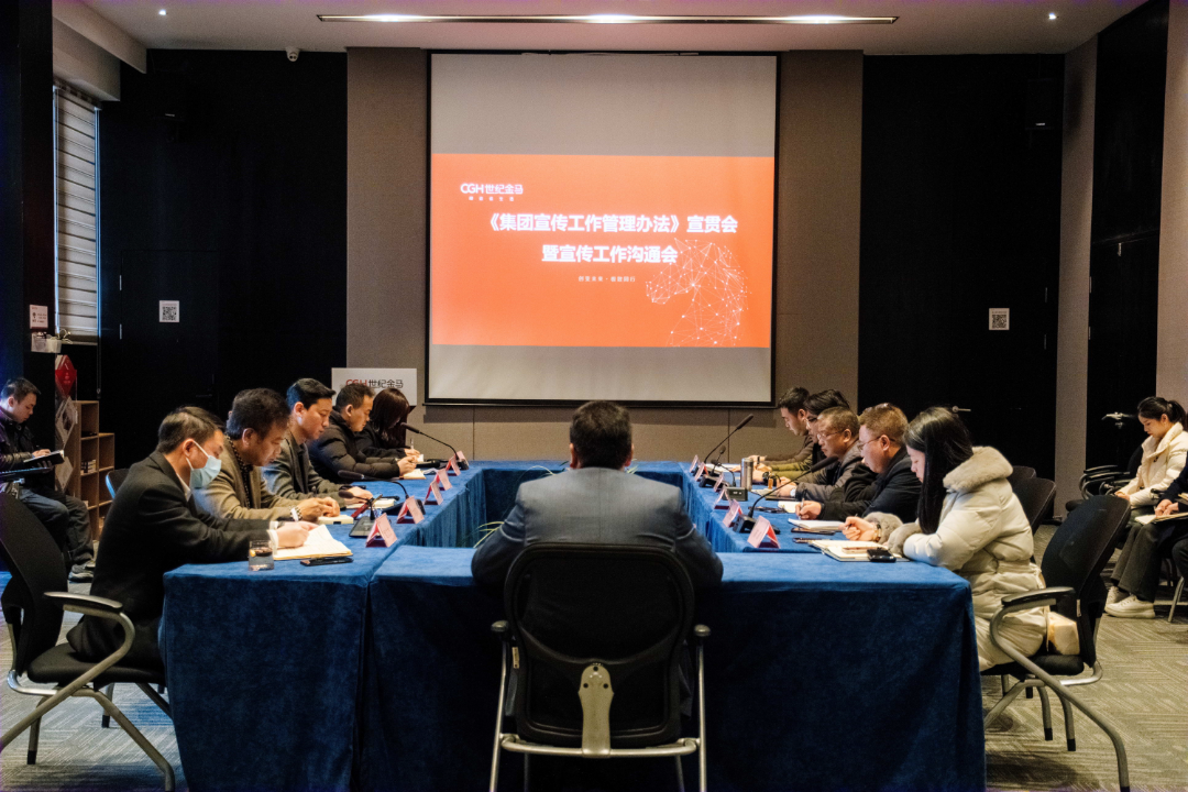 世纪金马《集团宣传工作管理办法》宣贯会暨宣传工作沟通会召开2月20日上午,世纪金马《集团宣传工作管理办法》宣贯会暨宣传工作沟通会召开。世纪金马集团总裁谢梦龙出席会议。集团副总裁、智慧服务事业部总经理陈茜,地产事业部总经理袁文杰,花滩医院院长刘嘉涪,融资管理中心总经理王彬,财务管理中心总经理李军,董事长助理卓中伟,人力行政中心总监李纯洁,总裁助理方欣以及各板块品宣分管领导、全体品宣岗位人员等参加会议。