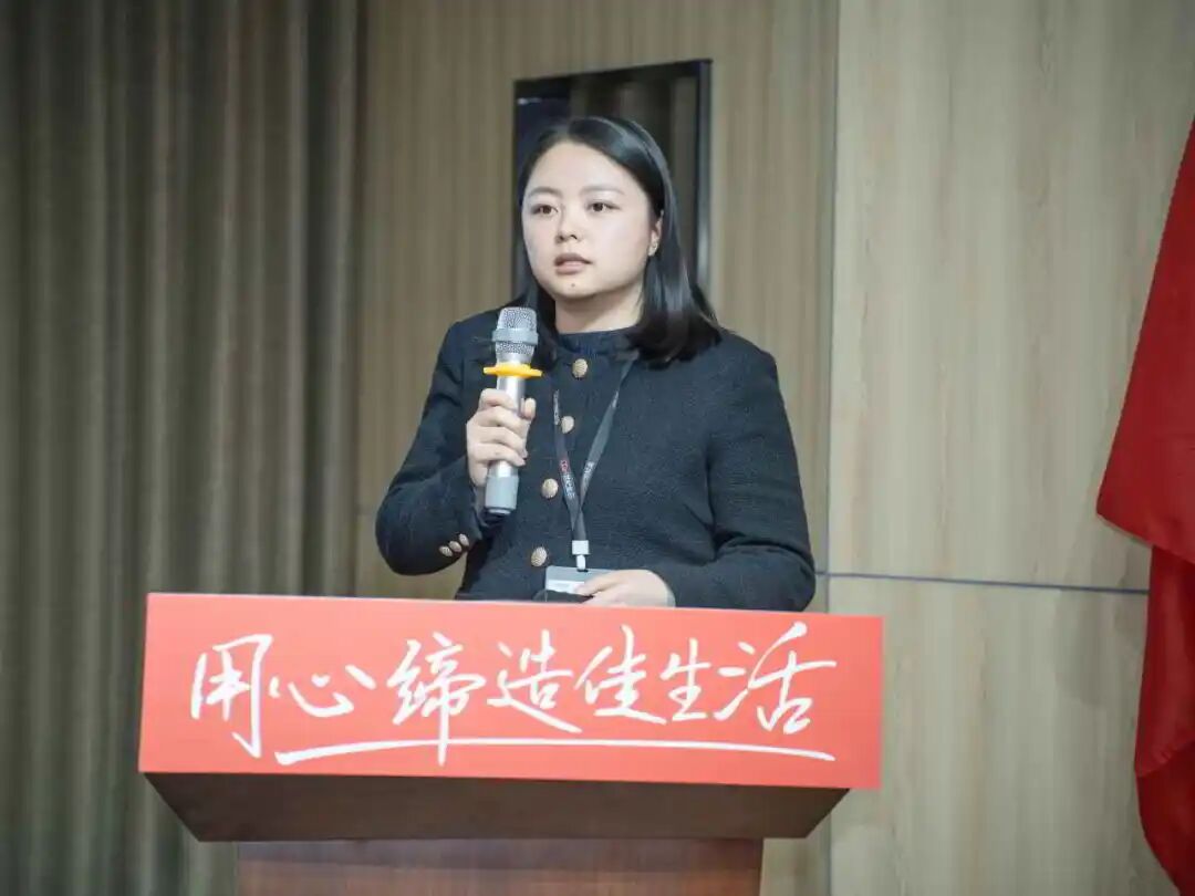 在践行成果分享环节,集团副总裁、智慧服务事业部总经理陈茜、花滩医院院长刘嘉涪、地产事业部总经理袁文杰三位领导先后登台,分别从行动的蜕变、案例故事分享、个人感悟到展望上,结合各自部门的实践经历,分享了在”极致洁净“行动中的收获。 首先是集团副总裁、智慧服务事业部总经理陈茜详细阐述了极致洁净活动的过程与深层意义,强调了扫除道对提升服务品质的重要价值。陈茜总详细阐述了活动如何推动保洁服务质量的飞跃升级:通过全员参与,不仅提升了员工对工作细节的关注度,更促进了清洁工具的全面升级。团队凝聚力在这个过程中得到显著增强,业主满意度调查显示,服务质量评分得到了提升。许多员工把这种极致精神带到了服务的每个环节。例如保洁员自发研究不同材质的最佳清洁方法,有的维修工在完成本职工作的同时主动维护环境整洁。这种主人翁意识,正是世纪金马品牌建设最坚实的基础。