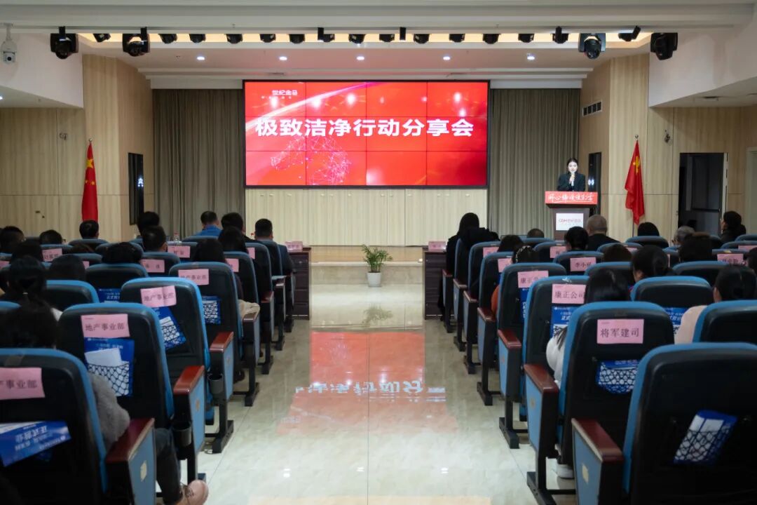 践行扫除道,共筑佳生活|世纪金马“全员极致洁净行动”分享会圆满举行世纪金马自2025年8月起开展了为期三个月的“全员极致洁净行动”。活动开展以来,各单位在办公环境优化及团队协作效率提升等方面均取得了显著成效。 为巩固行动成果,深化全员对扫除道精神的理解与应用。11月18日下午,召开了“践行世纪金马全员极致洁净行动”分享会。集团总裁谢梦龙出席会议,集团各中心/办公室全体人员、地产事业部全体人员、智慧服务事业部项目经理及以上人员、花滩医院科室主任及以上人员、其他分(子)公司全体人员等参加会议。
